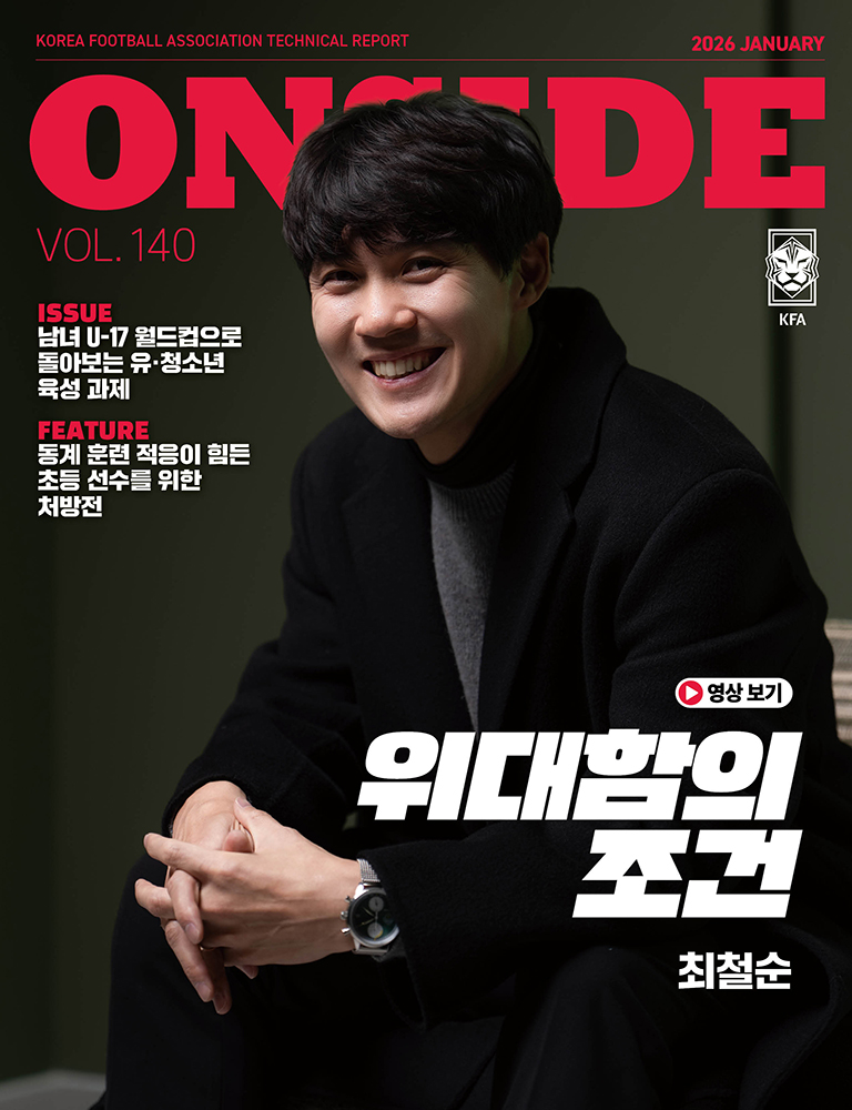 ONSIDE는 대한축구협회가 발행하는 축구 기술보고서 겸 매거진입니다. 반칙이 적용되지 않는 바른 위치라는 의미로 오프사이드의 반대말입니다. KFA와 한국 축구도 반칙 없이 바른 위치에서 바른 마음가짐으로 활약하겠다는 함축적 의미를 내포하고 있습니다.
